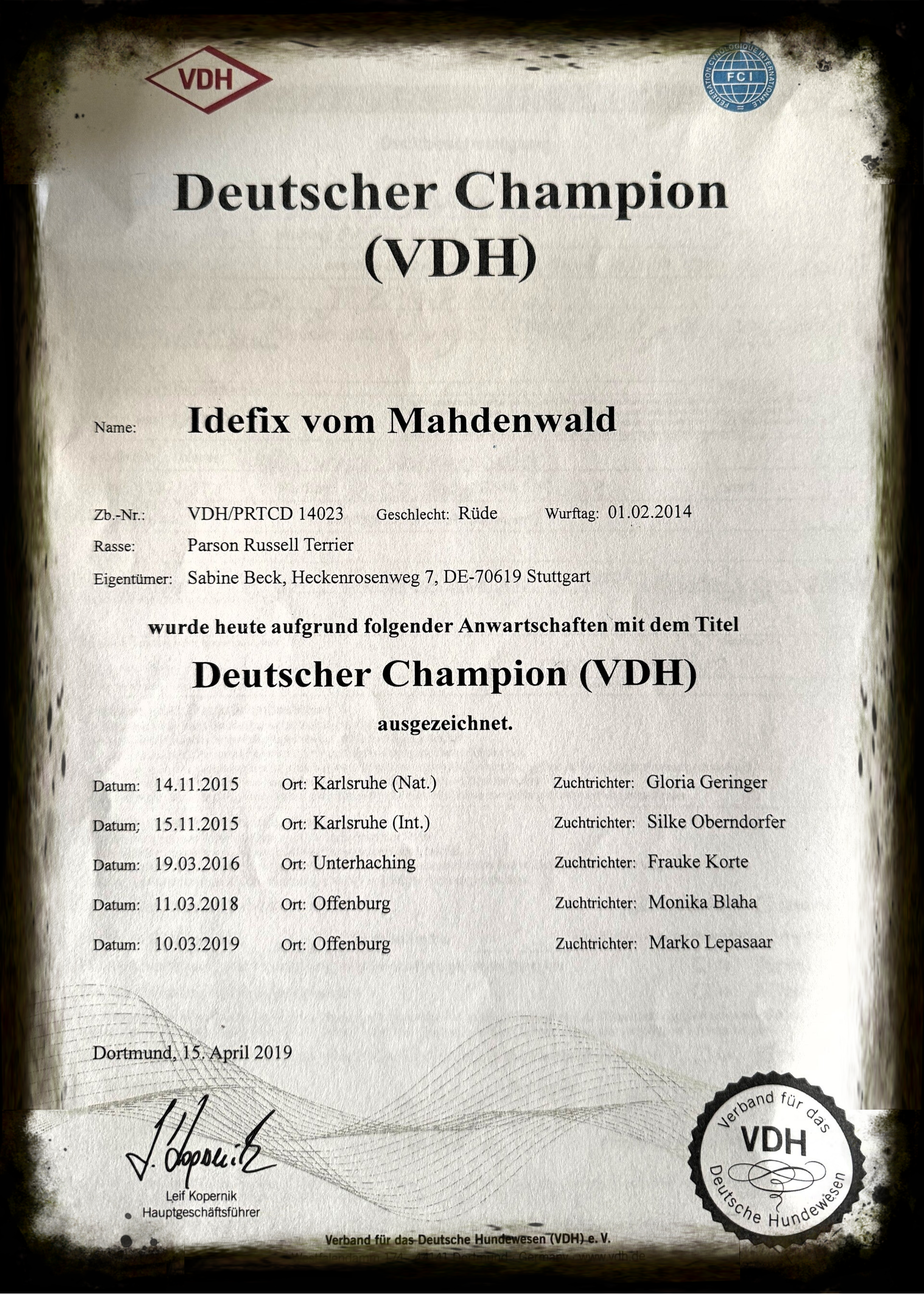 Titel:Deutscher Champion VDH